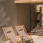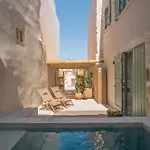 Casa Vindemia别墅毗邻Agios Nikolaos,为入住别墅的客人提供游泳池景的客房.